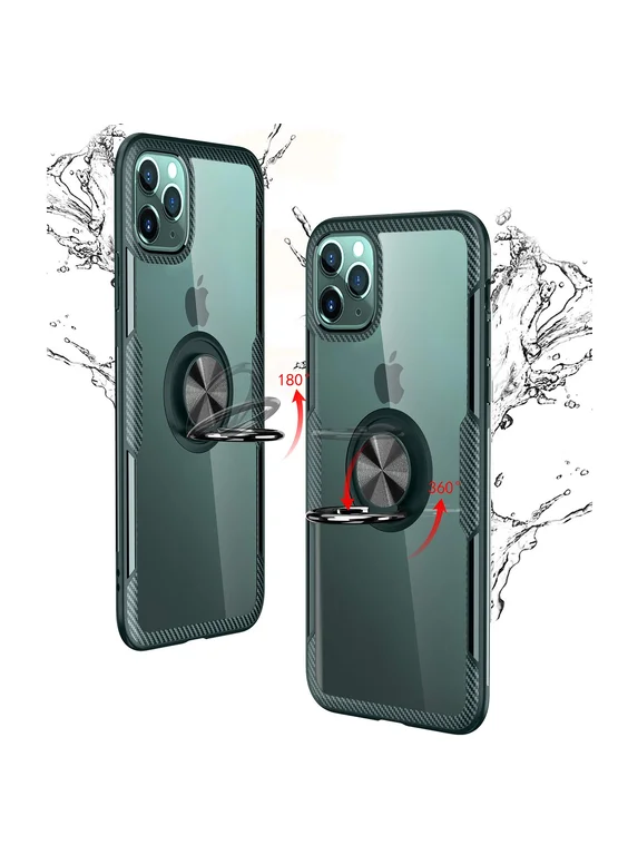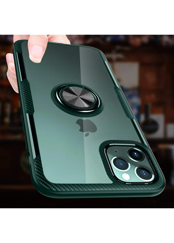 TPU+PC чехол Deen CrystalRing под магнитный держатель для Apple iPhone 11 Pro (5.8") Бесцветный / Темно-зеленый