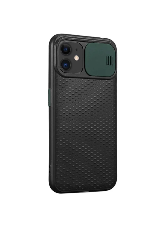 Чехол Camshield Black TPU со шторкой защищающей камеру для Apple iPhone 11 (6.1") (Черный / Темно-зеленый)