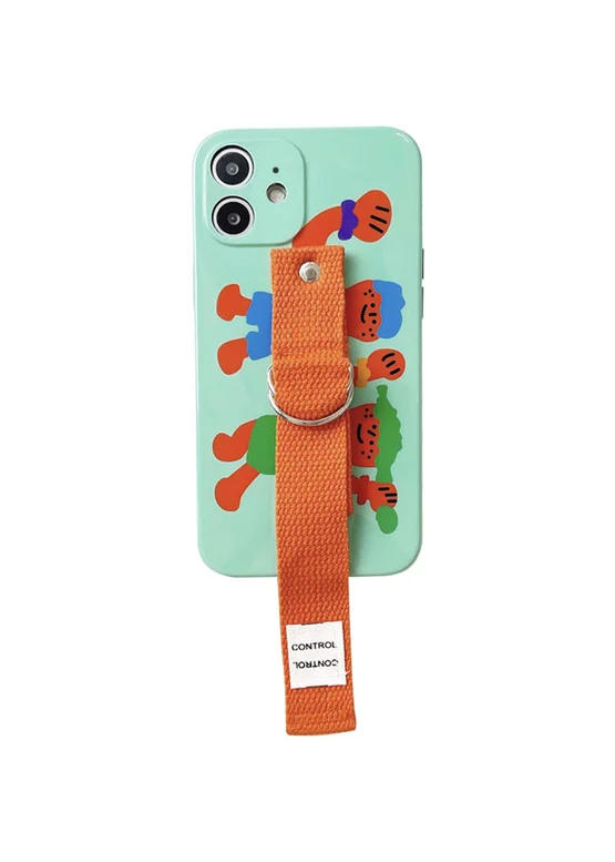 Чехол Funny Holder с цветным ремешком для Apple iPhone 11 (6.1") Зеленый / Оранжевый