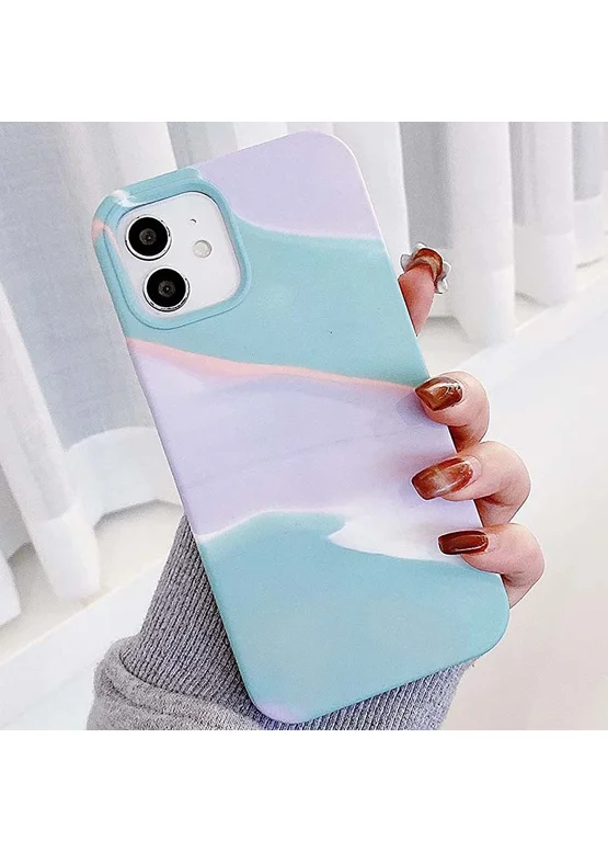Чехол Silicone case full Aquarelle для Apple iPhone 11 (6.1") Бирюзово-сиреневый