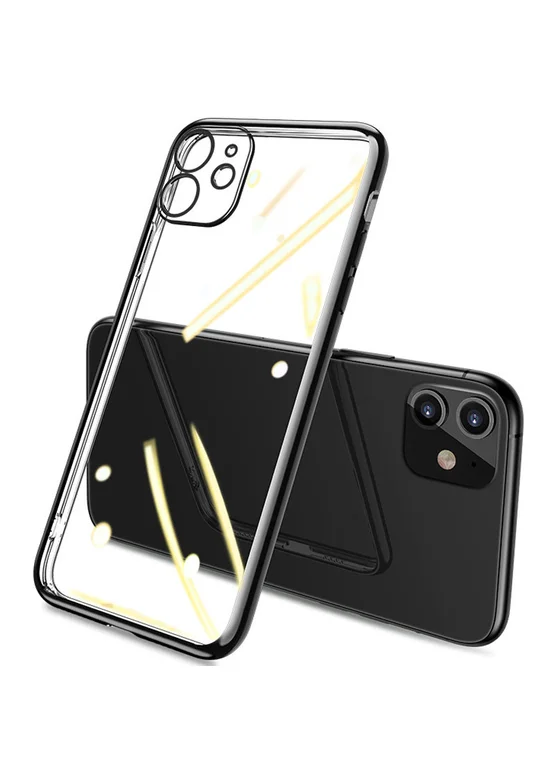 Прозрачный силиконовый чехол с глянцевой окантовкой Full Camera для Apple iPhone 11 (6.1") (Черный)