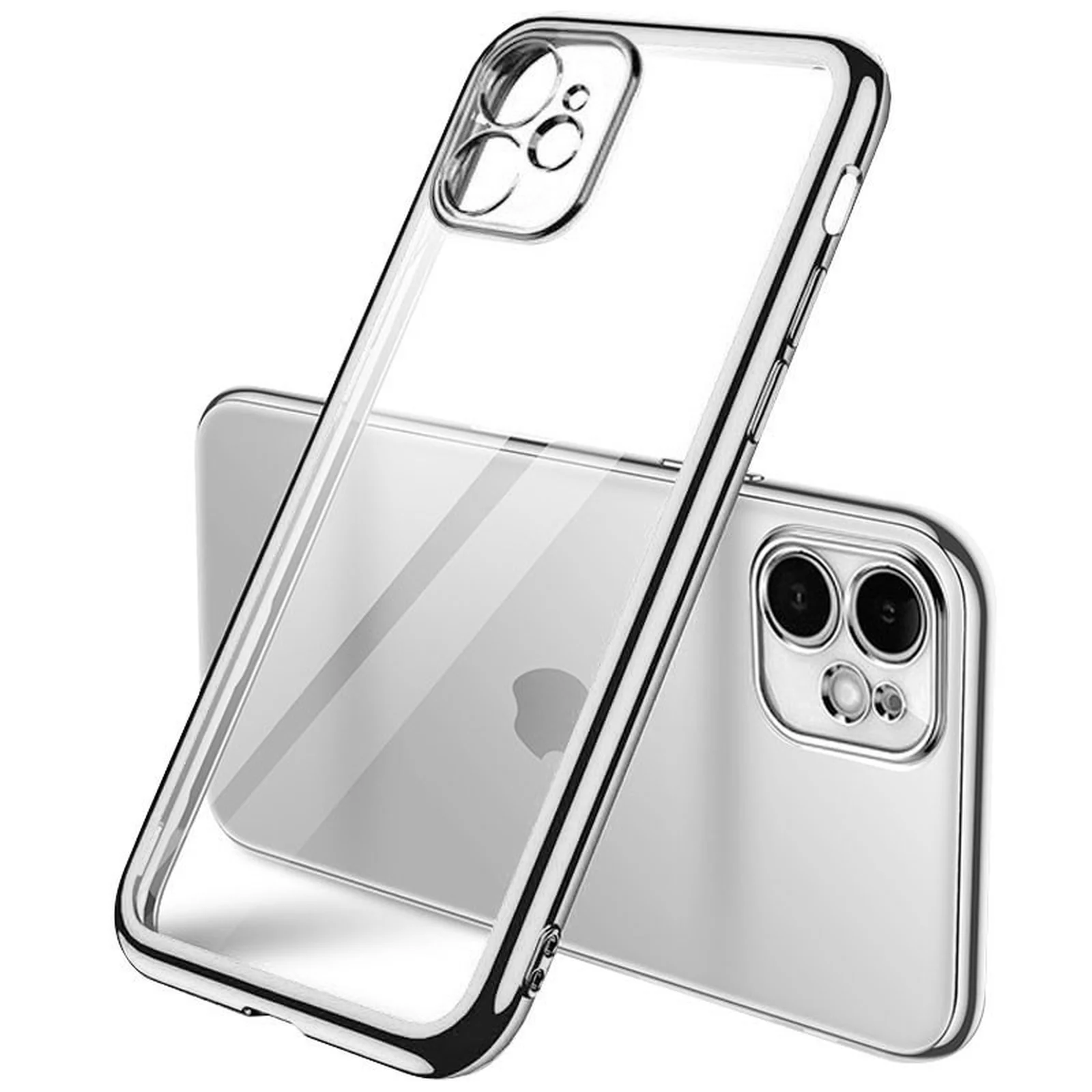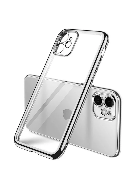 Прозрачный силиконовый чехол с глянцевой окантовкой Full Camera для Apple iPhone 11 (6.1") Серебряный