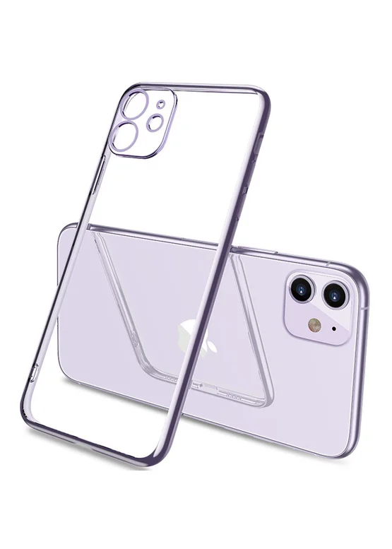Прозрачный силиконовый чехол с глянцевой окантовкой Full Camera для Apple iPhone 11 (6.1") (Сиреневый)