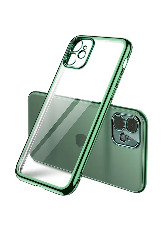 Прозрачный силиконовый чехол с глянцевой окантовкой Full Camera для Apple iPhone 11 (6.1") (Зеленый)