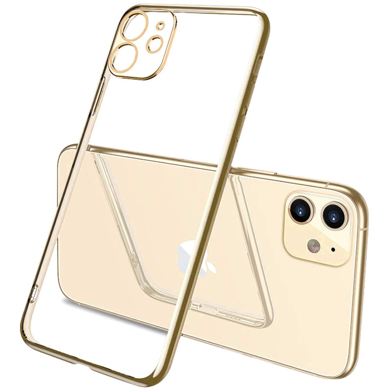Прозрачный силиконовый чехол с глянцевой окантовкой Full Camera для Apple iPhone 11 (6.1") (Золотой)