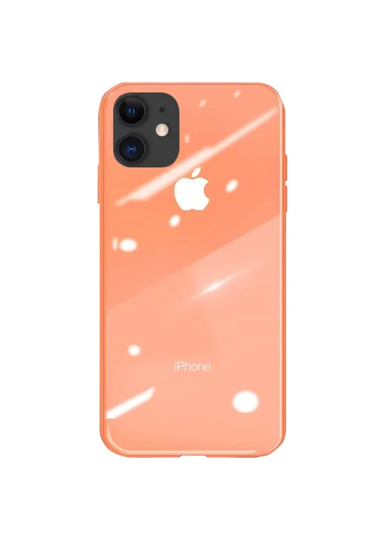 TPU+Glass чехол GLOSSY Logo series для Apple iPhone 11 (6.1") (Персиковый / Peach)