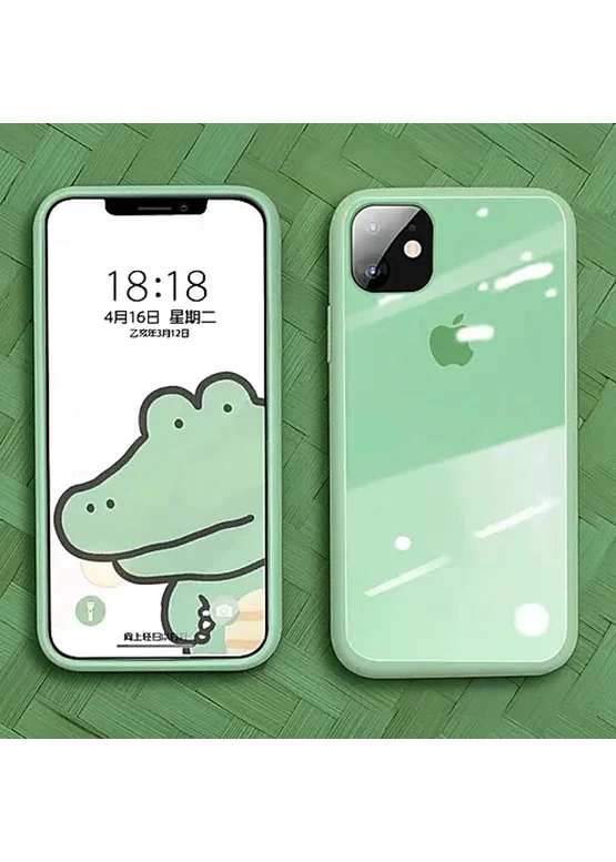 TPU+Glass чехол GLOSSY Logo series для Apple iPhone 11 (6.1") (Салатовый / Light green)