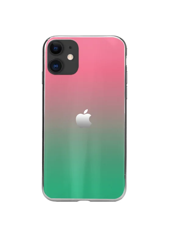 TPU+Glass чехол Gradient Aurora с лого для Apple iPhone 11 (6.1") (Розовый / Бирюзовый)
