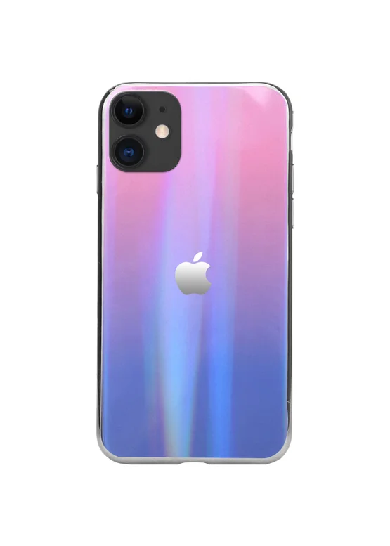 TPU+Glass чехол Gradient Aurora с лого для Apple iPhone 11 (6.1") (Розовый / Сиреневый)