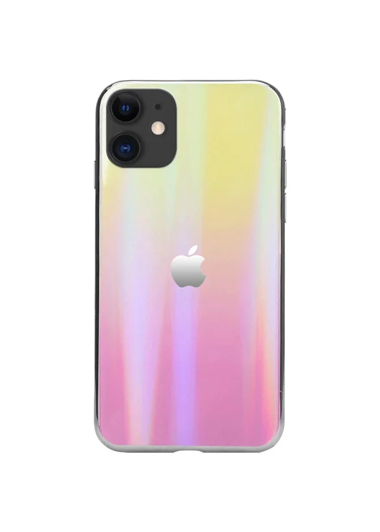 TPU+Glass чехол Gradient Aurora с лого для Apple iPhone 11 (6.1") (Золотой / Розовый)