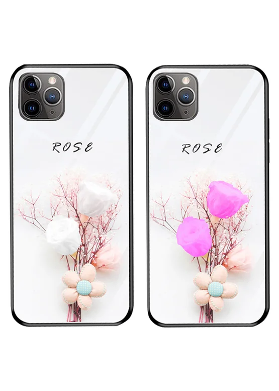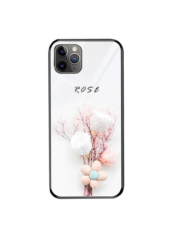 TPU+Glass чехол светящийся в темноте для Apple iPhone 11 (6.1") Rose /Белый