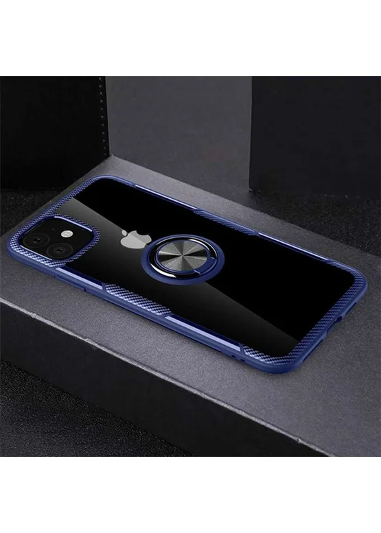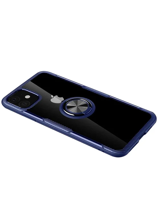 TPU+PC чехол Deen CrystalRing for Magnet (opp) для Apple iPhone 11 (6.1") (Бесцветный / Синий)