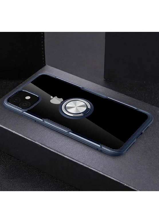 TPU+PC чехол Deen CrystalRing for Magnet (opp) для Apple iPhone 11 (6.1") (Бесцветный / Темно-синий)