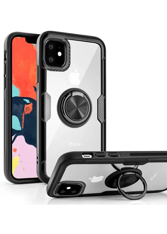 TPU+PC чехол Deen CrystalRing под магнитный держатель (opp) для Apple iPhone 11 (6.1") (Бесцветный / Черный)