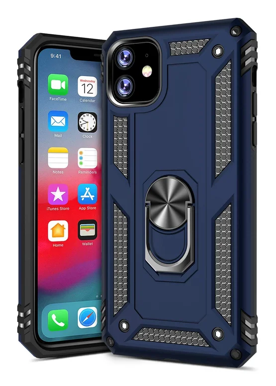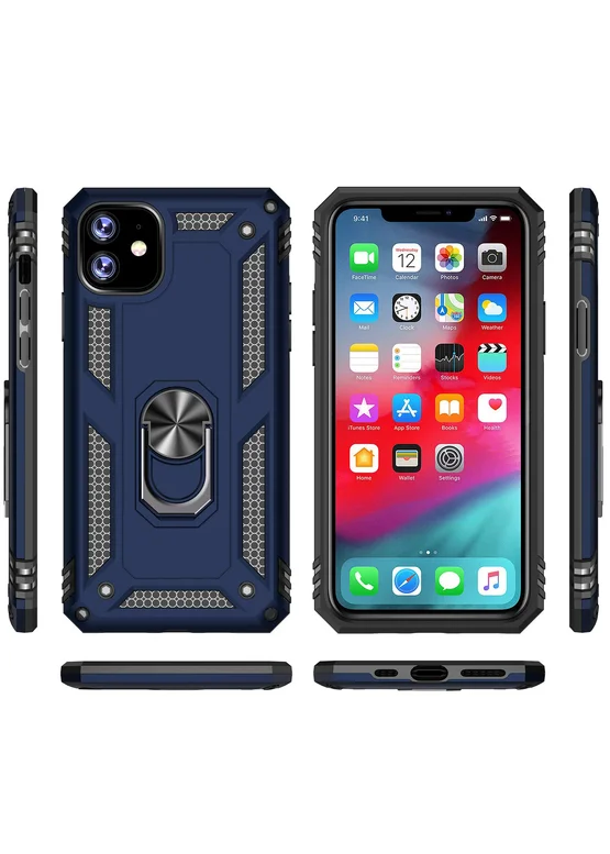 Ударопрочный чехол Serge Ring магнитный держатель для Apple iPhone 11 (6.1") Темно-синий