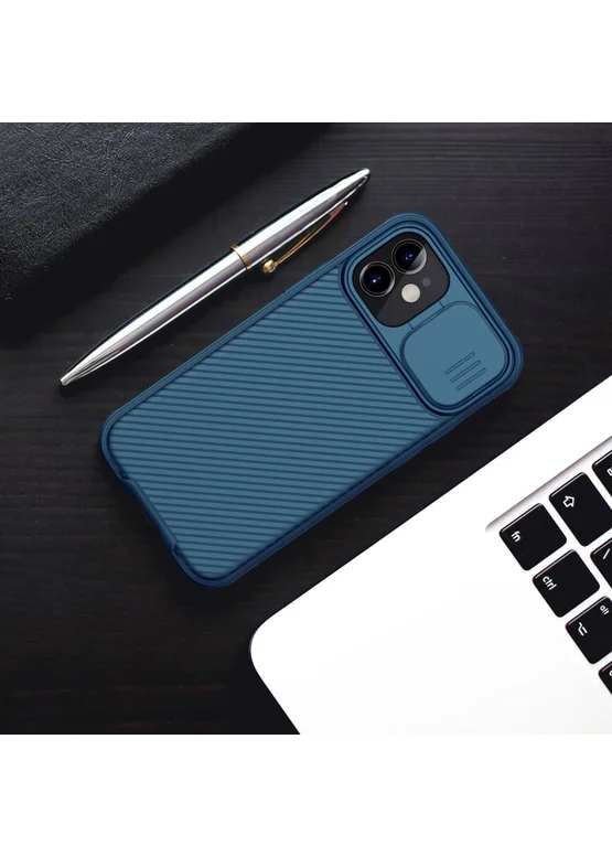Карбоновая накладка Nillkin Camshield (шторка на камеру) для Apple iPhone 12 mini (5.4") (Синий / Blue)