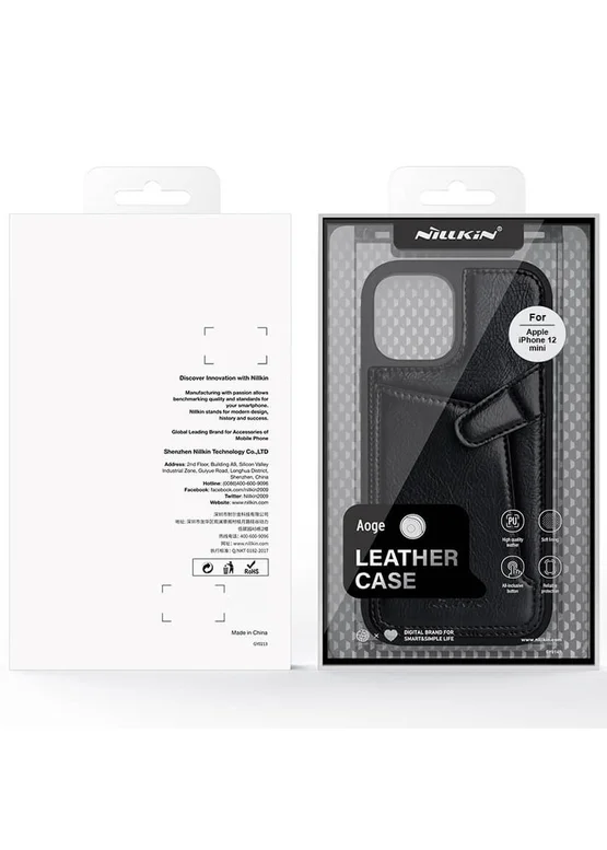 Кожаная накладка Nillkin Aoge (с карманом) для Apple iPhone 12 mini (5.4") Черный