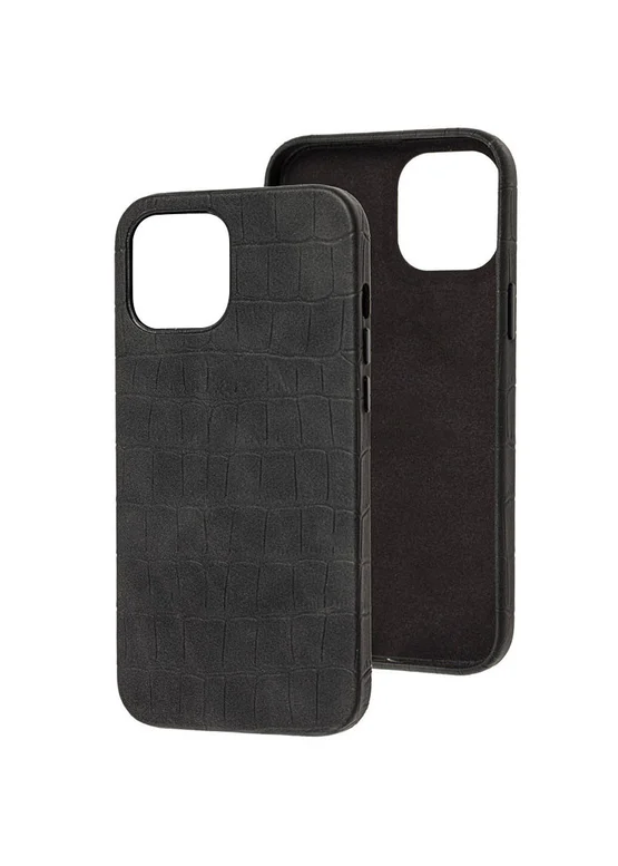 Кожаный чехол Croco Leather для Apple iPhone 12 mini (5.4") Black