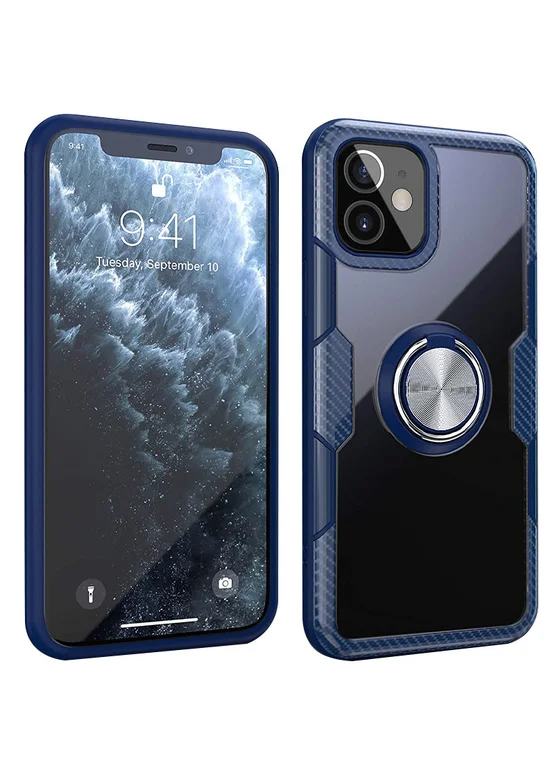 TPU+PC чехол Deen CrystalRing for Magnet (opp) для Apple iPhone 12 mini (5.4") (Бесцветный / Темно-синий)