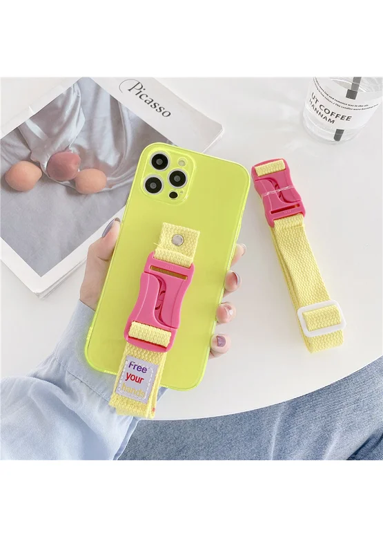 Чехол Handfree с цветным ремешком для Apple iPhone 12 Pro Max (6.7") Желтый