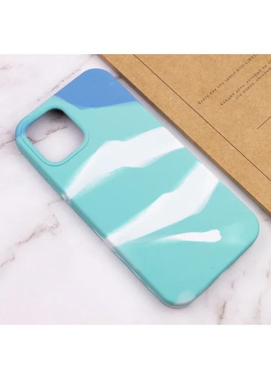 Чехол Silicone case full Aquarelle для Apple iPhone 12 Pro Max (6.7") Бирюзово-белый
