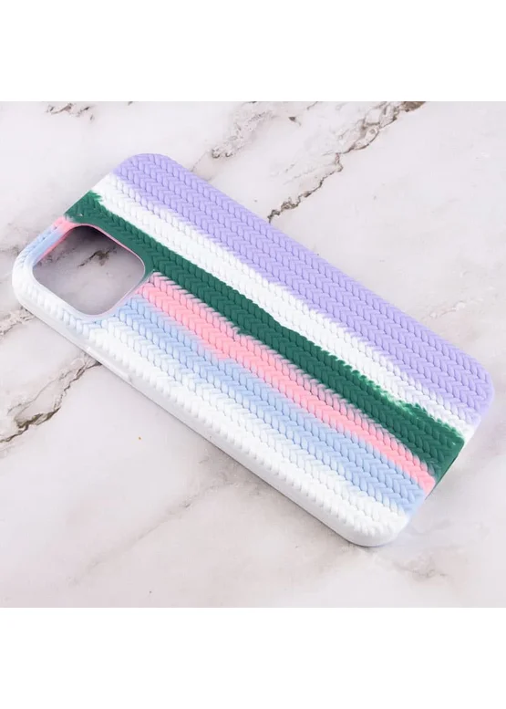 Чехол Silicone case Full Braided для Apple iPhone 12 Pro Max (6.7") Белый / Сиреневый