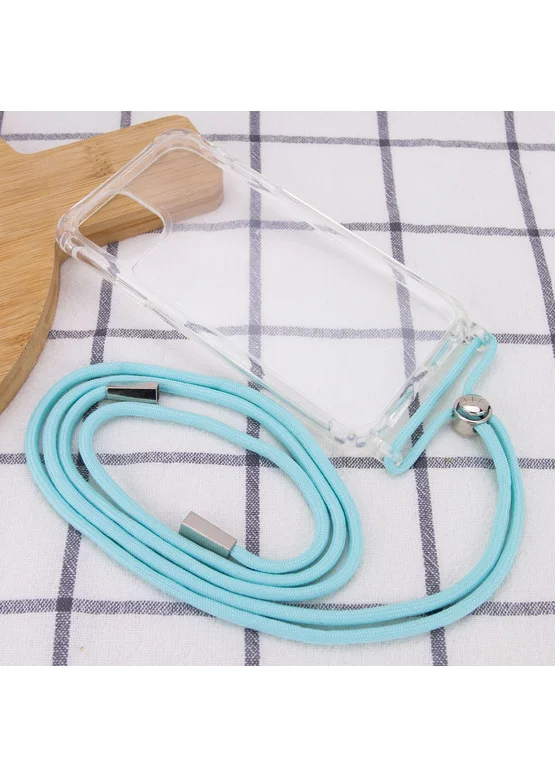 Чехол TPU Crossbody Transparent для Apple iPhone 12 Pro Max (6.7") (Бирюзовый)