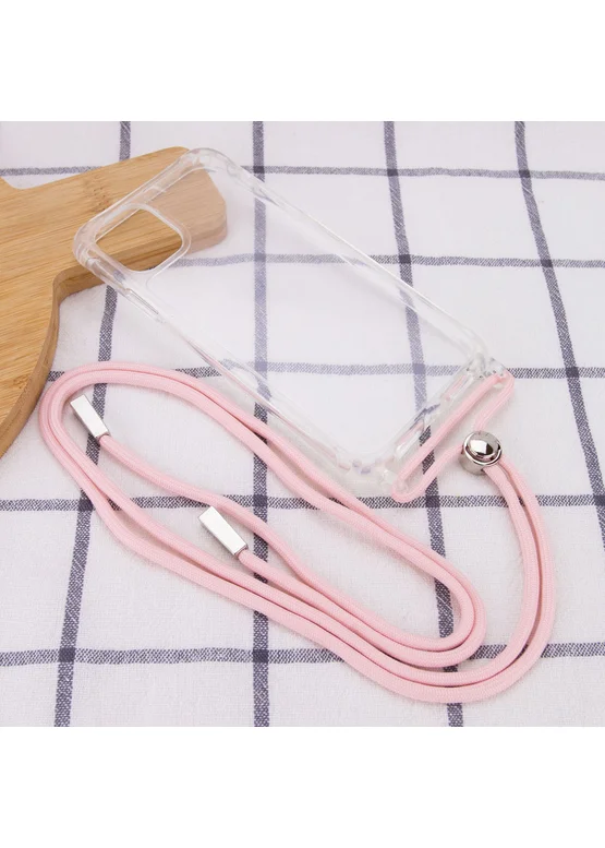 Чехол TPU Crossbody Transparent для Apple iPhone 12 Pro Max (6.7") (Пудровый)
