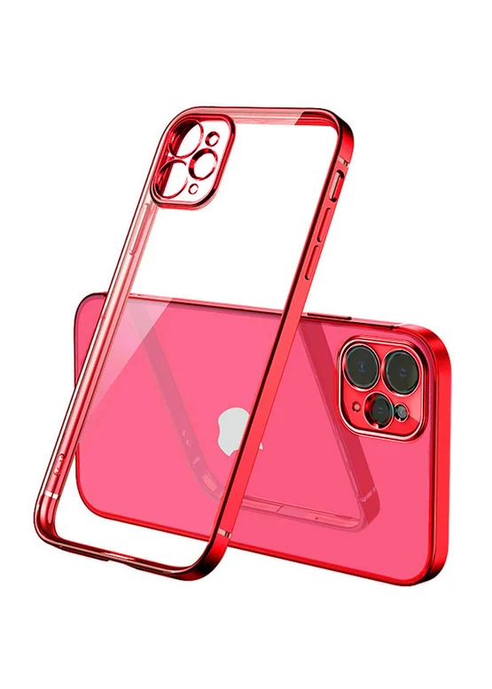 Прозрачный силиконовый чехол с глянцевой окантовкой для Apple iPhone 12 Pro Max (6.7") (Красный)