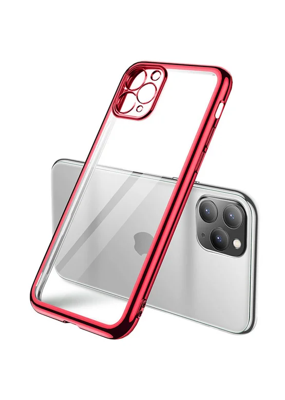 Прозрачный силиконовый чехол с глянцевой окантовкой Full Camera для Apple iPhone 12 Pro Max (6.7") Красный