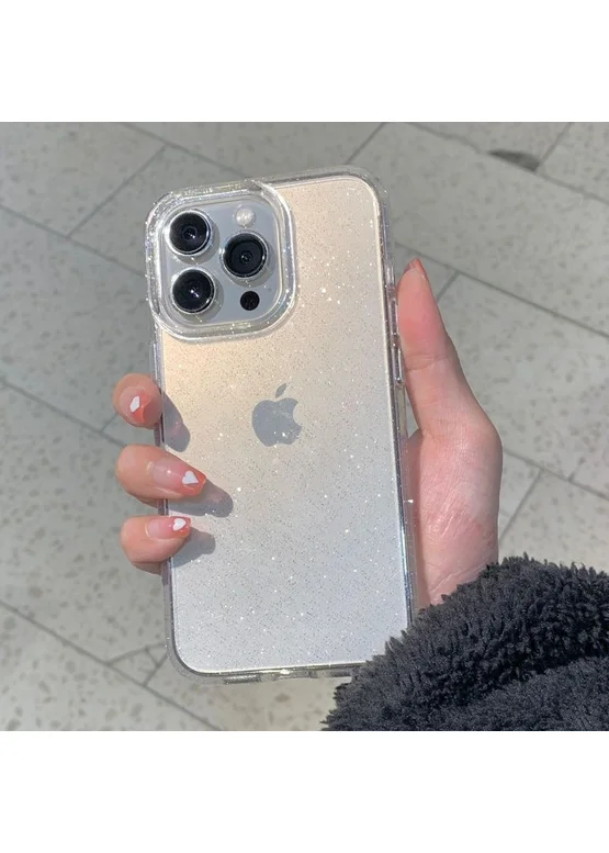 Чехол изготовлен из прочного и эластичного силикона, который идеально облегает ваш телефон, не утяжеляя его. 📱 Прозрачный материал позволяет наслаждаться оригинальным дизайном iPhone, при этом добавляя ему изюминку в виде блестящих блёсток.