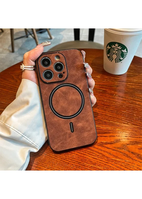 Этот коричневый чехол придает вашему смартфону классический и роскошный вид. Совместимость с MagSafe обеспечивает безопасное и устойчивое прикрепление, а также обеспечивает быструю беспроводную зарядку. 🔋⚡