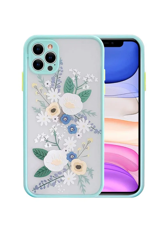 TPU+PC чехол Picture Color Buttons full camera для Apple iPhone 12 Pro Max (6.7") Бирюзовый / Цветы