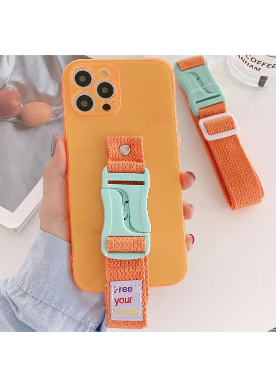 Чехол Handfree с цветным ремешком для Apple iPhone 12 Pro (6.1") Оранжевый