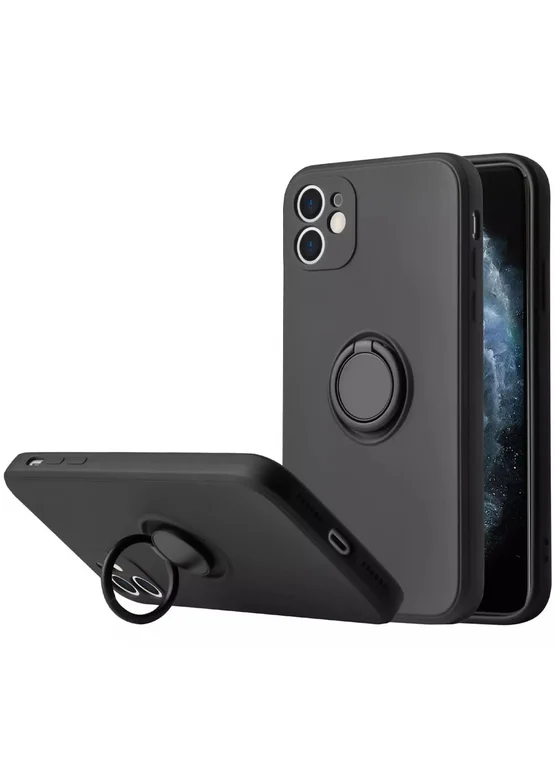 Чехол TPU Candy Ring Full Camera для Apple iPhone 12 (6.1") Черный / Black