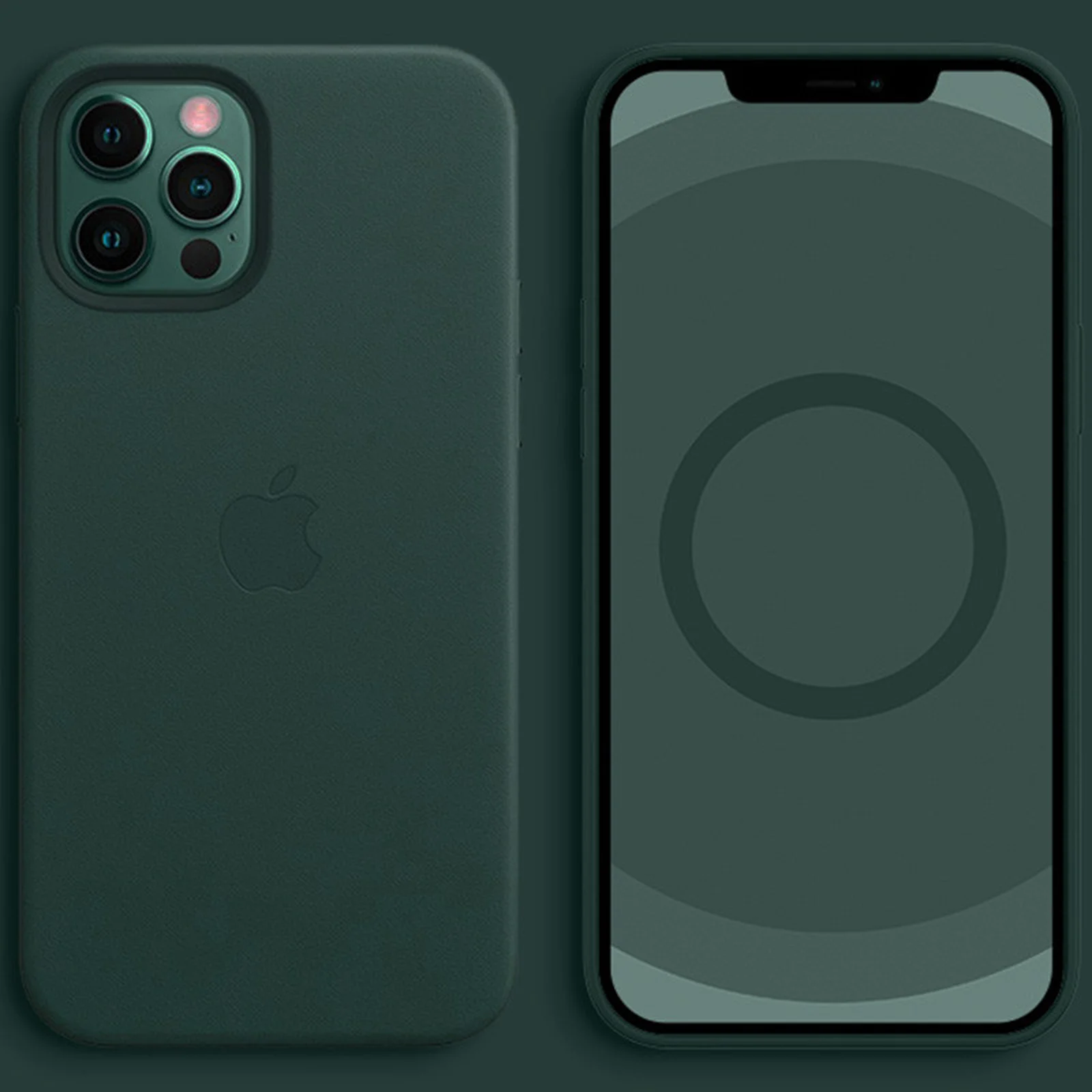 Кожаный чехол Leather Case (AAA) with MagSafe and Animation для Apple iPhone 12 Pro / 12 (6.1") Dark Green