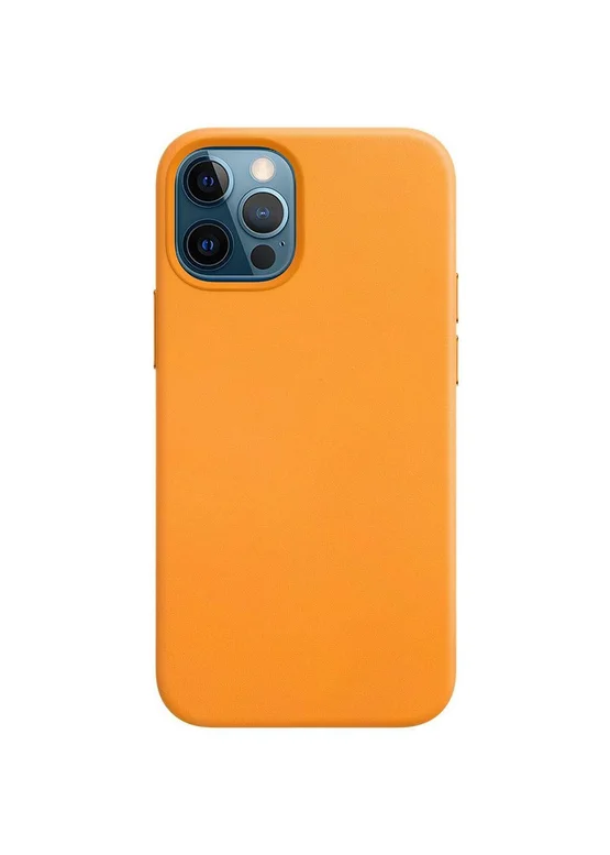 Кожаный чехол Leather Case (AAA) without Logo для Apple iPhone 12 Pro / 12 (6.1") Yellow