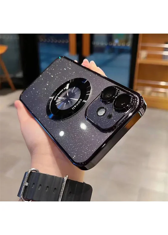 📱 Пластиковый чехол "Luxury Diamond" с блестками with MagSafe для iPhone 12 Черный 📱