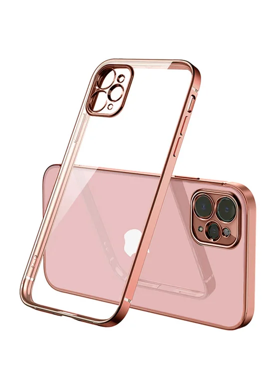 Прозрачный силиконовый чехол с глянцевой окантовкой для Apple iPhone 12 Pro / 12 (6.1") (Rose Gold)