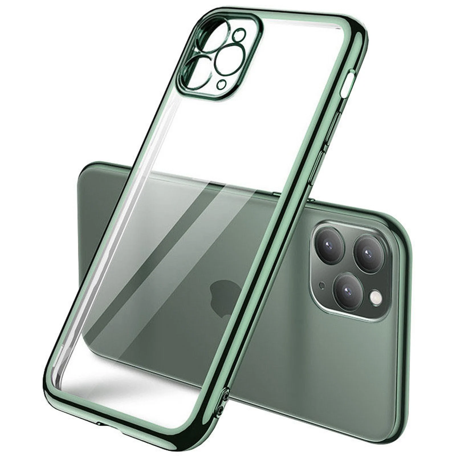 Прозрачный силиконовый чехол с глянцевой окантовкой Full Camera для Apple iPhone 12 Pro (6.1") Темно-зеленый