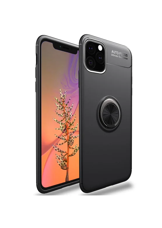 TPU чехол Deen ColorRing под магнитный держатель (opp) для Apple iPhone 12 Pro / 12 (6.1") Черный / Черный