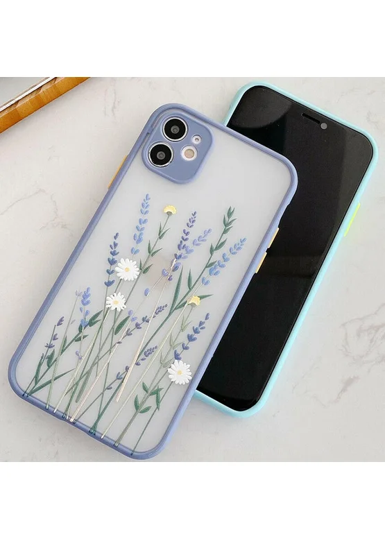 TPU+PC чехол Picture Color Buttons full camera для Apple iPhone 12 (6.1") Lavender Grey / Цветы