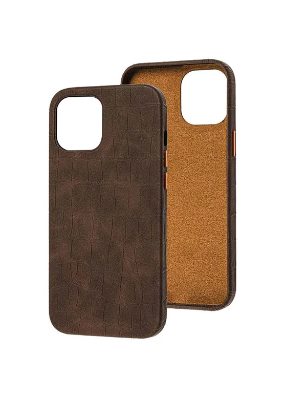 Кожаный чехол Croco Leather для Apple iPhone 13 mini (5.4") Brown