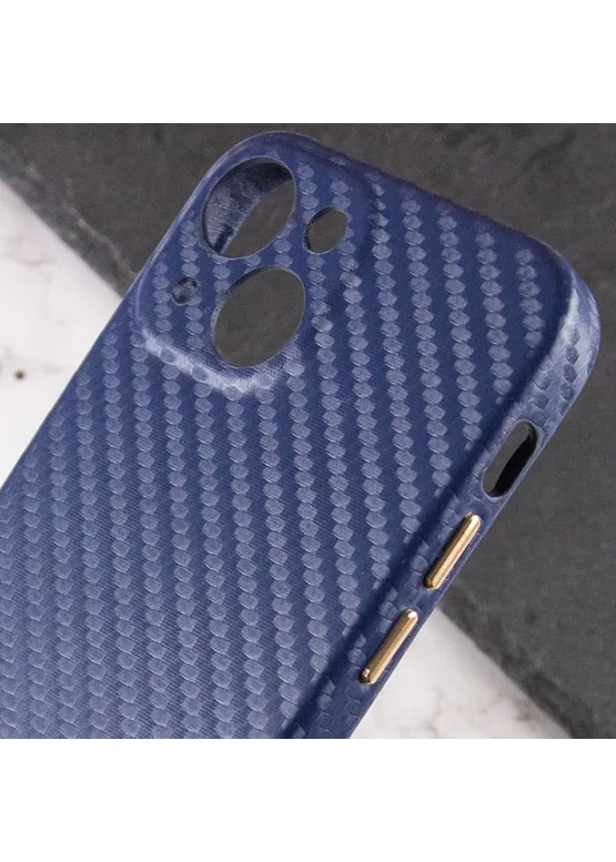 Кожаный чехол Leather Case Carbon series для Apple iPhone 13 mini (5.4") Синий