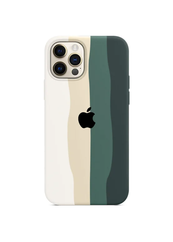 Чехол Silicone case Full Rainbow для Apple iPhone 13 Pro (6.1") Белый / Зеленый