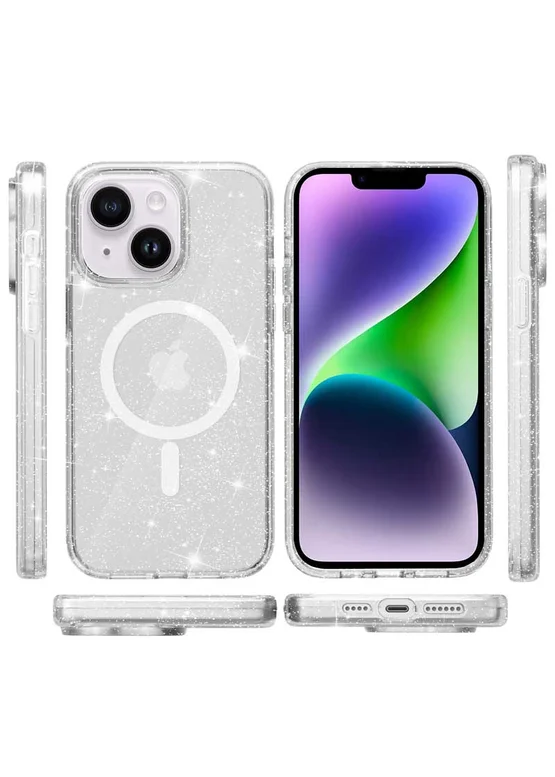 Чехол TPU Galaxy Sparkle (MagFit) для Apple iPhone 13 / 14 (6.1") Clear+Glitter