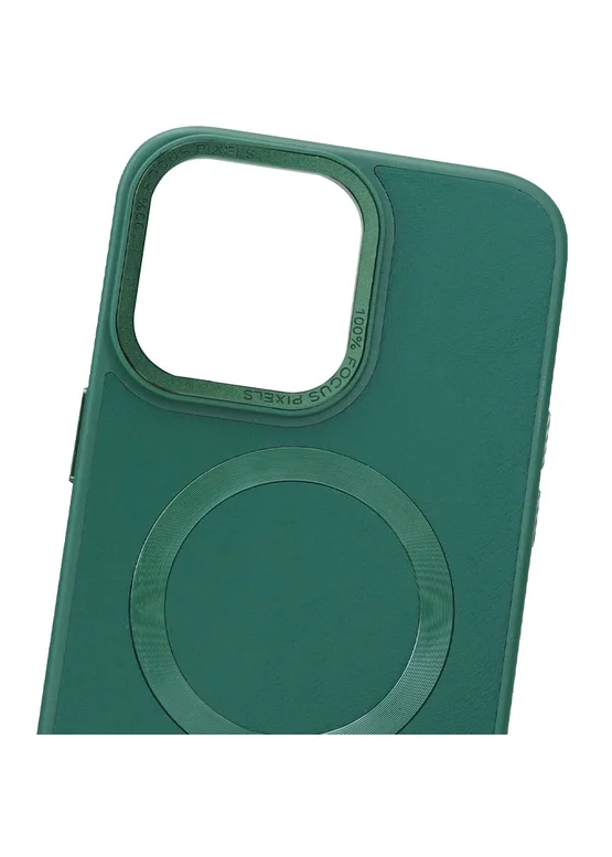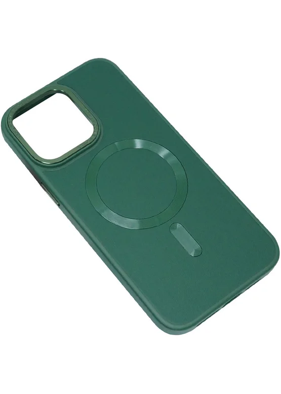 Кожаный чехол Bonbon Leather Metal Style with MagSafe для Apple iPhone 13 (6.1") Зеленый / Pine green
