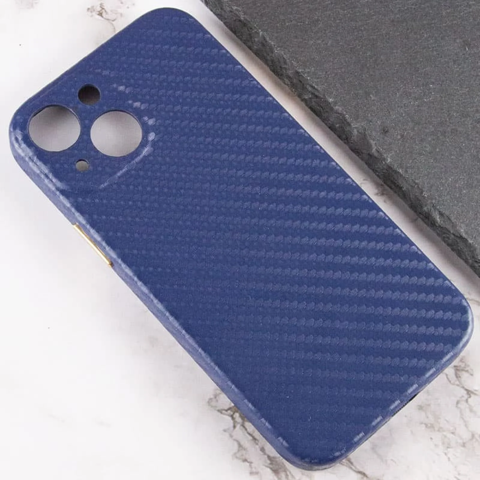 Кожаный чехол Leather Case Carbon series для Apple iPhone 13 (6.1") Синий