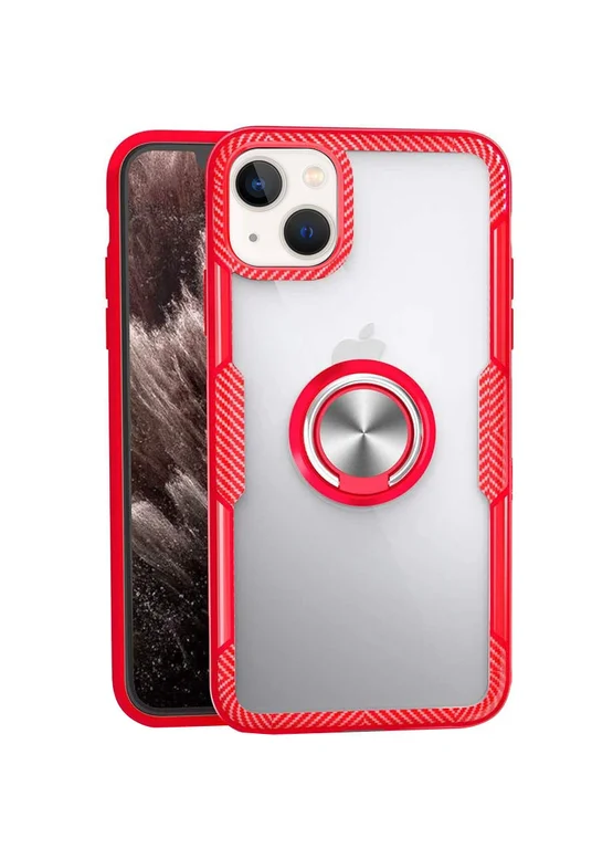 TPU+PC чехол Deen CrystalRing for Magnet (opp) для Apple iPhone 13 (6.1") Бесцветный / Красный