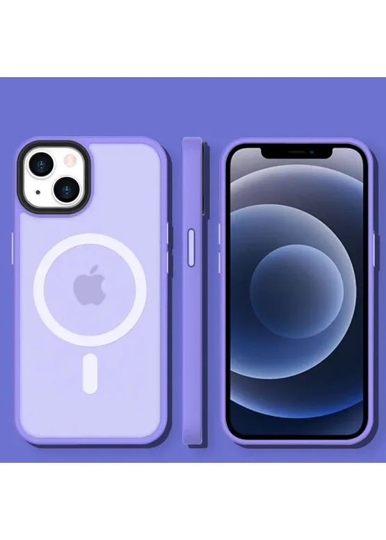 TPU+PC чехол Metal Buttons with MagSafe Colorful для Apple iPhone 13 (6.1") Сиреневый